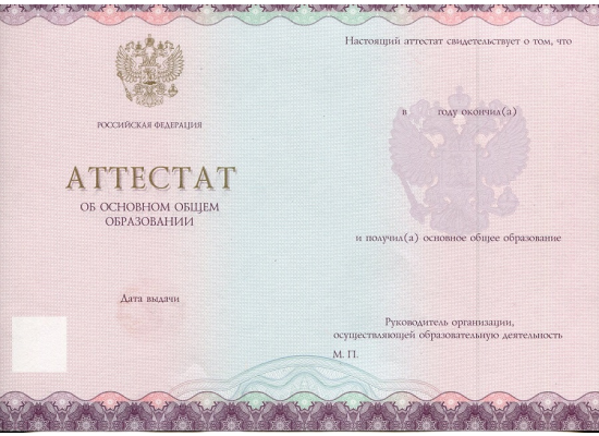 Покупая аттестат за 9 класс 2021 - 2025 гг. Новый Образец в Компании «EXPRESS-Дипломы», вы можете быть уверены в его достоверности и соответствии государственным нормам и требованиям. Мы гарантируем, что наши Аттестат за 9 класс 2021 - 2025 гг. Новый Образец заполняются по учебному плану нужного учебного заведения на нужный год окончания, делается всё по уставу.