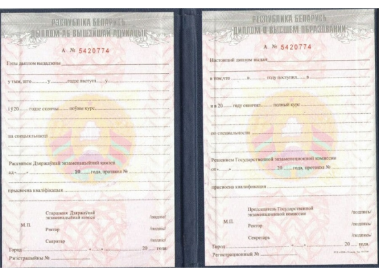 Покупая диплом о высшем образовании Белорусии 1994 - 2010 гг. в Компании «EXPRESS-Дипломы», вы можете быть уверены в его достоверности и соответствии государственным нормам и требованиям. Мы гарантируем, что наши Диплом о высшем образовании Белорусии 1994 - 2010 гг. заполняются по учебному плану нужного учебного заведения на нужный год окончания, делается всё по уставу.
