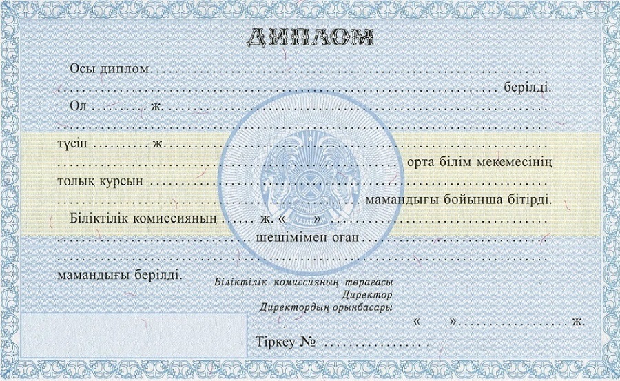 - диплом техникума / ПТУ Казахстана любого года выпуска, включая времена СССР – а дополнительно к нему может прилагаться список предметов и оценок, которые можно выбрать по вашему желанию;